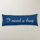 Personalized text body pillow | I need a hug. Navy blue and white colors. Elegant script typography.