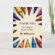 Show your appreciation to a teacher with this stylish card. With a design of colorful crayons around the edge, the card displays the caption 'Thank you for being a great teacher', followed by the teacher's name. The card is blank inside for your own message. Click on 'Personalize' to add the name you would like on the card.