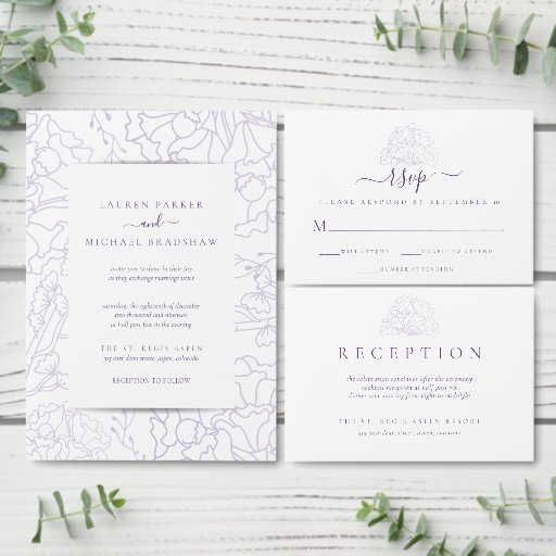 Elegant Floral Purple Minimalist Wedding Sticker. Matching products can be found in Luxury Purple collection. You are welcome to visit my store for more beautiful products.
