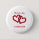Personalize this button with her soon-to-be new last name. Hearts made with red roses is the design on this engagement gift button. A great gift for the Future Mrs.