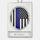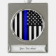 Personalized Thin Blue Line American Flag Silver Plated Banner Ornament