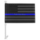 A Thin Blue Line symbolic Grey US flag design graphic car flag. A great gift idea for gatherings, memorial celebrations and remembrance occasions. Personalize it with your text.