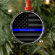 Personalized Thin Blue Line Grey US Flag Keepsake Metal Ornament