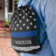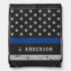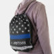 Thin Blue Line Backpack - American flag in Police Flag colors, distressed design . Personalize with police officer name. This personalized police drawstring bag is perfect for police and law enforcement families and all those who support them. A great police graduation or law enforcement retirement gift. COPYRIGHT © 2020 Judy Burrows, Black Dog Art - All Rights Reserved. Personalized Thin Blue Line Police Drawstring bag