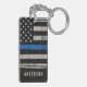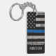 Thin Blue Line Keychain - American flag in Police Flag colors, distressed design . Personalize with police officers name, family name or department . This personalized police keychain is perfect for police and law enforcement departments, families and all those who support them . COPYRIGHT © 2020 Judy Burrows, Black Dog Art - All Rights Reserved. Personalized Thin Blue Line Police Keychain