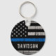 Personalized Thin Blue Line Keychain - American flag in Police Flag colors, distressed design . Personalize with Officer's name, or department. This personalized police keychain is perfect for police departments, or as a memorial keepsake. COPYRIGHT © 2020 Judy Burrows, Black Dog Art - All Rights Reserved. Personalized Thin Blue Line Police Officer keychain