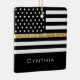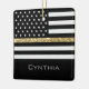 Personalized Thin Gold Line Glitter Flag Ceramic Ornament