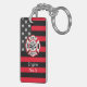 Create a custom set of fire truck keys that are identified with the name of the fire department. Clip onto firefighter tools, equipment, and fireman turnout bag. Label each set of fire truck keys with the engine number. Keep all your keys at the firehouse organized. Add the fire dept name, fireman's name, engine, or squad number. Add your custom Maltese Cross emblem and fire dept squad name.