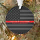 Personalized Thin Red Line Grey US Flag on a Ornament