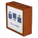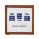 There are two co-ordinating patterns for this desk organiser. One side has three 'Think outside the box' text and box icons, with space for you to customize with your name or initials or other text in matching navy. On the reverse side there is a multiple think outside the box pattern in red and navy, all on a silver grey background.