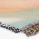 A quality printed throw has its advantages. This is a much finer weave throw than its loopier cousins, and though lighter, it is worth the investment for custom room accessorizing. The back is much prettier than the typical brown, and the fringe on the long sides very vivid, the selvage nicely done. Before photographing, I washed the throw in cold water, delicate, with a thicker woven throw the same size. On tumble dry low, this throw was dry in half the time as the other. This is a very practical quality if you use throws for furniture covers or to wrap up in frequently. The sleekness of the fabric makes it a great layer for accenting or protecting without the feeling of sitting on too much stuff. Perfect for napping or when you feel a light chill coming on. The color printing is beautiful and on this fabric, matched the design and color of my Photoshop image. This is an advantage for blending room fabrics and colors. The fringe on the short sides prints the colors from the design image and therefore varies from the side fringe. I streaked a white fractal line through the plaid pattern to give the illusion of weaving. This printed as crisp as an illusory thread, and put some white in the short side fringe, showing another advantage of print vs loomed- for artistic purposes, line lines, detail, and color integrity can be planned and preserved. My loomed throws have color limitations and more of a needlepoint texture. Print throws reproduce an exact image. The throw felt a little stiff straight out of the package, but this went away in the first delicate wash. Of course I searched the wash water for ink or bleeding and there was none.