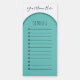Simple elegant custom To- do list. Add your name and write your things to do. Personalize this tear-away notepad to your taste. It is modern, with simple flowing fonts, and a colorful checklist.