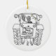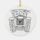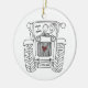 A tractor country farm wedding ceramic hanging decoration which can be personalized with both the couple's names and wedding date on the front. The back shows the back of the tractor with a 'Just Married' sign.