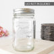 Looking for a chic way to save for your dream destination? Our personalized mason jar is the perfect solution! Featuring your names, an adorable airplane silhouette, and the encouraging message, 'travel fund.' Not only does it make saving more fun, but also serves as a constant reminder of your travel goals. It's time to turn your dreams into plans, one coin at a time.
