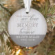 Remember your loved ones year round with this personalized memorial keepsake ornament. The treasured memory ornament features an optional photo on the back. The ornament reads "when someone we love becomes a memory that memory becomes a treasure". Personalize with your loved ones name and dates.