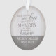 Remember your loved ones year round with this personalized memorial keepsake ornament. The treasured memory ornament features a photo on the back. The ornament reads "when someone we love becomes a memory that memory becomes a treasure". Personalize with your loved ones name and dates.