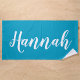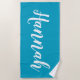 Personalize this fun, trendy script calligraphy beach towel with your name! This is the teal blue version. Great for your summer vacation, bachelorette parties, kids summer camp, or spring break!