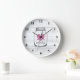 Personalized trendy white wood kitchen wall clock. Rustic country chic home decor for kitchen, shop, restaurant, business, office, cafe etc. Add custom name or quote. Round clocks with numbers, distressed pink heart and vintage mason jar outline drawing.
