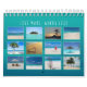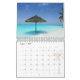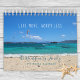 Paradise on a calendar! Add your own special touch to this stylish custom year calendar by replacing the twelve tropical beach photos with your favorites! This two page photo calendar template includes all twelve of your photos on the back for easy reference; all are framed in turquoise and are featured over an artistic wave background. Easily personalize the calendar title, name and year using the provided templates. An artistic tropical palm tree silhouette with coconuts adorns each monthly page.