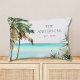 Bring tropical vibes to your beach house decor with this personalized accent pillow! Featuring watercolor palm trees, a blue beach scene, and summer coastal charm.