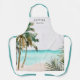 Cook in tropical style with this personalized apron! Featuring watercolor palm trees, a blue beach scene, and coastal vibes—suitable for beach house decor.