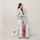 A hot pink, orange and white tropical palm tree frond design, this suitcase is personalized with your first name in a chic handwritten script. Choose the color of your suitcase shell, the handle, wheel covers and bumpers. The perfect personal gift or accessory for any occasion! MATCHING luggage tag and more in our collection.