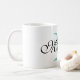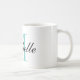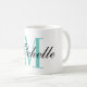 Design your own personalized name monogram mug. Cute monogrammed coffee mug design. Cute typography Birthday or wedding favor gift idea for men, women, kids, friends and family. Stylish elegant script typography. Custom color for name initial letter. ie turquoise blue and white. Unique coffeemugs also available as large oversized cups and big to go travel mugs Add family name, surname, or first name.