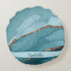 Personalized Turquoise Teal Gold Marble Agate Round Pillow