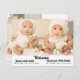 Simple twins birth announcement card with welcome text that includes the newborn's name and birth information. You can include a second picture of the baby or the baby's parents on the back, along with a brief message.