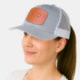 Custom Leather Patch Hat, Sytle: Adult Retro Trucker Cap, Color: Heather / Black, Shape: Circle