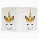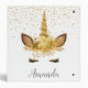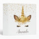 Personalized Unicorn Face Gold Glitter 3 Ring Binder