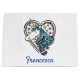 A magical unicorn with a flowing mane enveloped in a heart scattered with colorful stars. Perfect for all unicorn lovers.