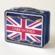 Custom Tin Sandwich box to add a personilzed touch to your dining experience. Celebrate in style with your own text added to this Patriotic design. Flying the flag of The United Kingdom. Union Flag also know as the Union Jack when flying on the ocean. This classic red white and blue design has been teamed up with Navy Alcohol Ink border artwork with liquid gold detailing. Great design for any special occasion and even the Kings Coronation in May . God Save the King the perfect design for your afternoon picnic , dine in style. I /