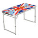 Show off your British spirit at your next party with this customizable British flag beer pong table! Featuring a bold red, white, and blue design with classic cup formations on each side, this table lets you add your own name for a personal touch. Perfect for backyard BBQs, tailgates, celebrations, or game nights with friends. Durable, portable, and easy to clean—ready for hours of fun and friendly competition!