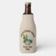 Personalized Van Life Family Road Trip Bottle Cooler, with customizable family name and mountain scene against a warm beige background. Ideal for family reunions and vacation road trips, and great as a keepsake or souvenir item when you add the year of travel and personalize with your family name. Underneath on the base, you can add your initials by replacing the CUSTOMIZABLE MONOGRAM. Get matching can and bottle coolers in various colors for all the family to make your next trip a holiday to remember.