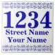 Victorian house number or street address tile - Blue on white with a printer's border. Coordinates well with iron gates.