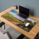 Bring the serene beauty of this vineyard view landscape into your workspace with this exquisite desk mat. Personalize it with a name printed on the lower right corner. This mat features a view of a crowded workbench of a busy inventor with a high-quality print from a high definition graphic. It provides a smooth and comfortable surface for your work for your laptop, keyboard and mouse. It can also transform your workbench with a stylish and elegant touch. Perfectly suited for all creators, artists, writers and anyone inspired.