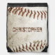 A photo of a worn baseball provides the background for this personalized design, featuring a customizable name in distressed font in a shade of reddish brown that matches the stitching. Ideal for the baseball or sports fan on your gift list.