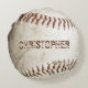 A photo of a worn baseball provides the background for this personalized round throw pillow featuring a customizable name in distressed font in a shade of reddish brown that matches the stitching. Ideal for the baseball or sports fan on your gift list.
