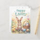 Celebrate Easter with cute, retro charm using this personalized Easter greeting card, featuring a watercolor bunny, chicks, and colorful Easter eggs in a wicker basket. Soft pinks, pastel greens, blues, and botanical details create an elegant vintage aesthetic. This fun Easter postcard is an ideal choice for those who love retro vintage illustration style and seasonal stationery. Fully customizable, this card allows you to add your family name, individual names, or a personalized Easter message, making it a thoughtful option for family greetings, spring well-wishes, or friendly holiday correspondence. Perfect for anyone who appreciates non-photo Easter cards, this design offers a charming way to celebrate the season.