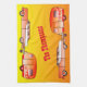 This beautiful dish towel has a vintage style car and caravan on a sunset colored background. This dish towel is customized; change the family name to your name.