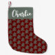 Personalized vintage Christmas stocking with trees. Cute small Holiday sock decoration with custom name. Hand drawn x-mas tree with yellow star. Fun winter theme pattern design. Red or custom color background. Also available in big sizes.