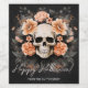 Elegant Halloween wine label with a vintage skull surrounded by peach roses and soft autumn florals. A stylish way to dress up wine bottles for parties, gifts, or seasonal entertaining. Personalize with your family name or message for a unique festive touch.