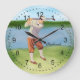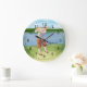 Personalized Vintage Golfer by the Riverbank Large Clock
