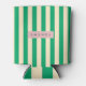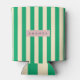 Personalized Vintage Green and Cream Stripe Can Cooler