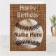 Personalized faux Burlap and Vintage Baseball, Happy Birthday Baseball Cards in HUGE, Regular and Note Card sizes. Click "More" on right to type in his NAME, change "Happy Birthday" and type in YOUR special birthday message on the inside of the card. Call Rodney or Linda for HELP or if you would like us to make changes for you. 239-949-9090.