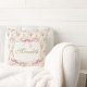 Personalized Vintage Roses Pink Bow Coquette Throw Pillow
