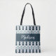 A pattern of string instruments adorn this customizable music-themed tote bag. Customize with your preferred name or text. Fun gift idea for a musician, music teacher, or orchestra director!