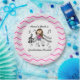 Violin Player paper plates features a stick figure girl violin player design with a wide border of chevron stripes of pink, light pink, gray, and white. You can personalize these violin player paper plates!