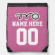 Personalized pink volleyball drawstring backpack bag with custom jersey number. Personalizable with name or monogram. Cute ball illustration for team, player, coach and fan.